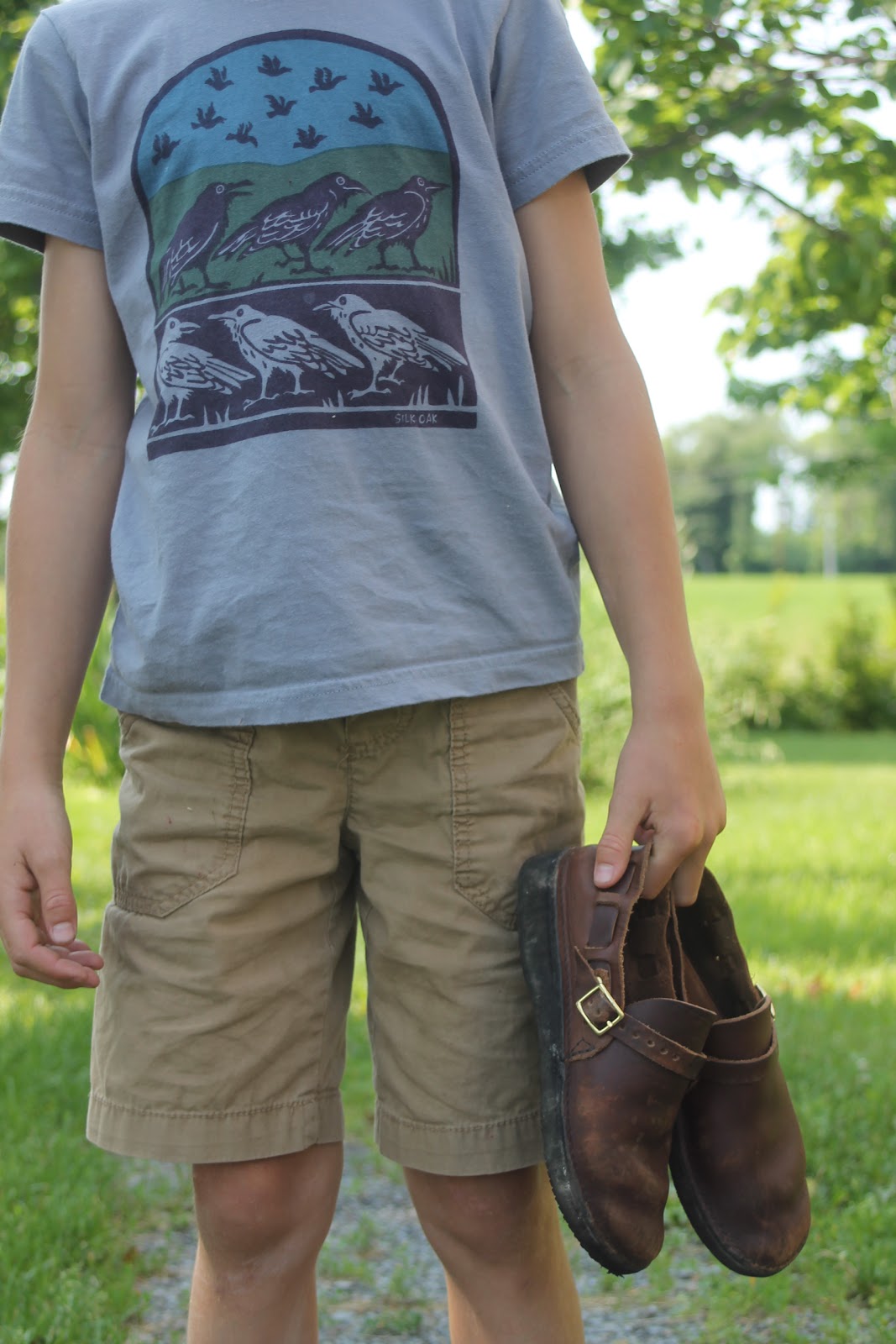 And what did my little (big) boy do when I asked him to model these pristine shoes? He did what little (big) boys do; he climbed his favorite tree. I almost said something about the scuffing, but I bit my tongue, partly because Dave and I wore our first pairs to do everything under the sun when we got them 20 or so years ago, and partly because that's what full grain leather is all about. It can take a few scrapes and bruises and somehow come out looking better for the wear.