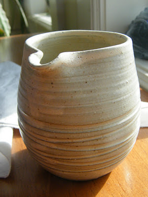 朝のコーヒーやシェアする次の一杯の紅茶にちょっとした手作りの愛を加える、 Jasmine Potsの取っ手なしのピッチャー ($15)