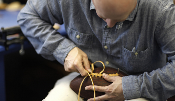 靴の革に使用しているのと同じホーウィンクロムエクセルで作られた上記の野球ボールと財布は、ニュージャージー州グレンロックのポール・カニンガムによって丁寧に手作りされ、丁寧に縫い付けられています。ポールは、いくつかのプロジェクトで使用するために革のスクラップを購入しました。手縫いのフットボール、ラグビー、メディシン ボールなど、ポールの作品をEtsy サイトでさらに見ることができます。 Etsy は 6 月にポールと彼のショップを特集し、古いフットボールの映像とポールのワークショップとプロセスを組み合わせたクールなビデオを掲載しました。